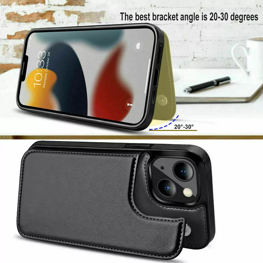 For iPhone 16 Wallet Case with Card holder Black Case + 2 x Screen Protectors