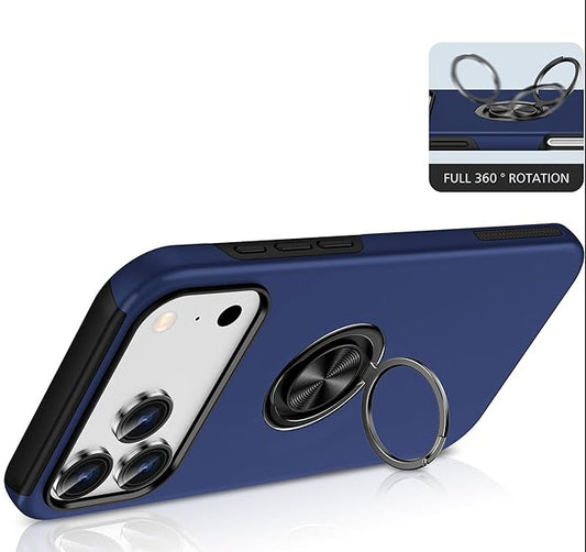 For iPhone 17 Pro Max Case with Metal Ring Stand-Navy Blue