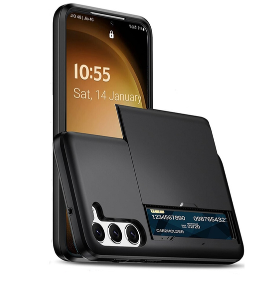 For Samsung Galaxy S22 Plus Slide Case Card Holder Black + 2 Screen Protectors