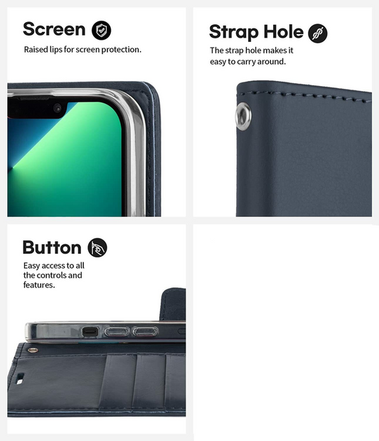 For iPhone 15 Plus Flip Wallet Case Navy Blue