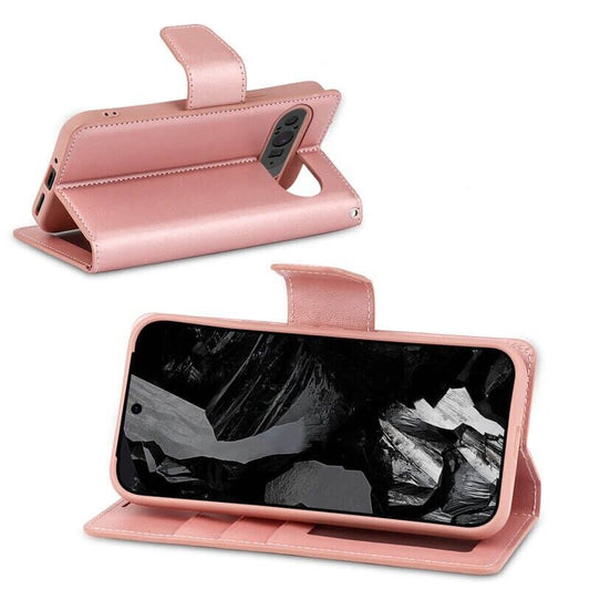 For Google Pixel 9 Wallet Case with Card holder Rosegold Flip Cover with lanyard