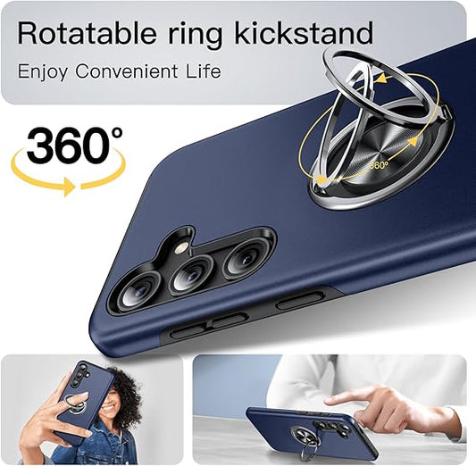 For Samsung Galaxy S22 Plus Case with Ring Holder Kickstand Phone Case,Navy Blue