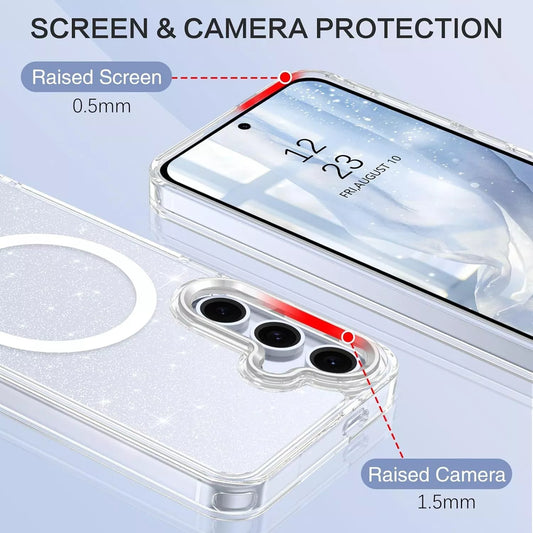 For Samsung Galaxy S25 Plus Hard Glitter Shockproof MagSafe Magnetic Case Cover