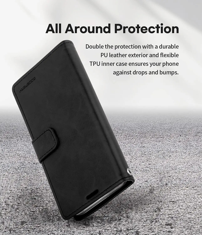 The shockproof TPU interior cushions your device against impacts, while integrated card slots provide convenient storage for ID, credit cards, and cash.