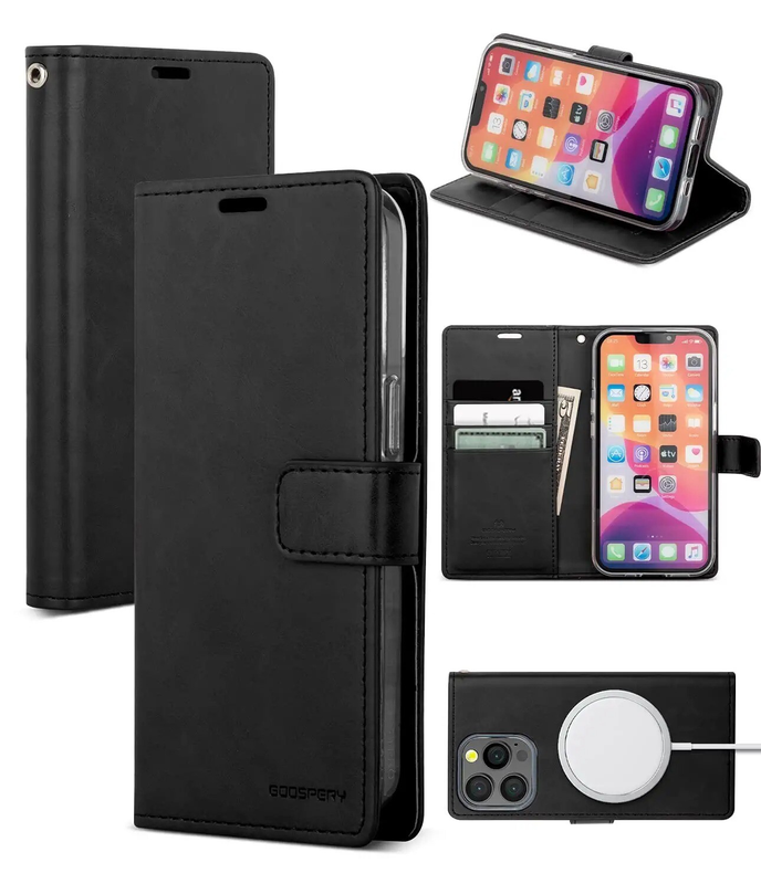Flip Wallet Case for iPhone 14 Plus -Black + 2 x Screen Protectors