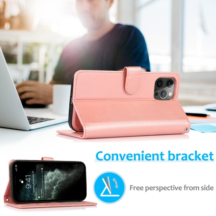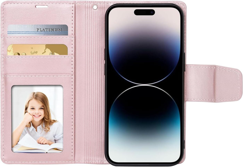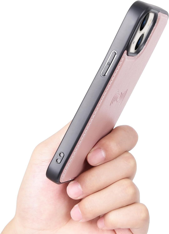 For iPhone 14 Magnetic Detachable Rose Gold Wallet Case