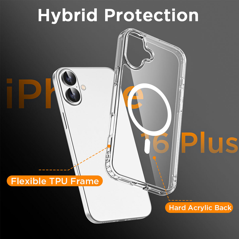 For iPhone 16 Plus Magnetic Case Clear Protective Cover