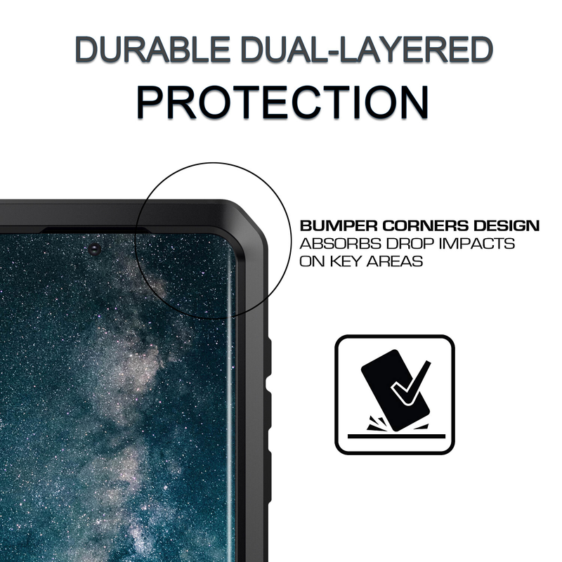 Engineered with premium metal and hyper-elastic silicon, this heavy-duty case delivers military-grade protection for your Samsung Galaxy device.