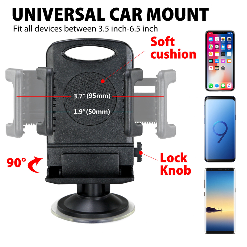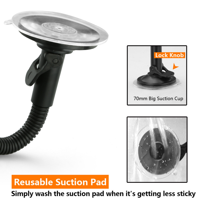 This premium windshield mount features a robust 70mm heavy-duty suction cup for secure attachment to your car’s windshield.