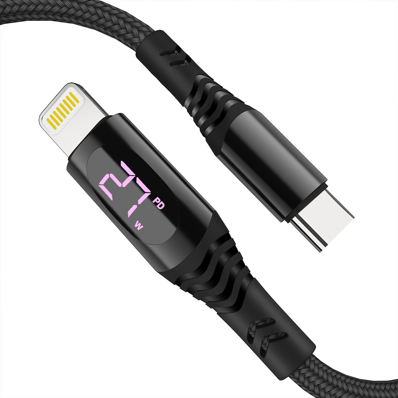 LED Digital Power Display: This USB C to iPhone cable features a cool led digital power display and 3-state charging indicator light, which can directly monitor the speed of fast charging when charging your phone, tablet or laptop, charging status at easy glance.