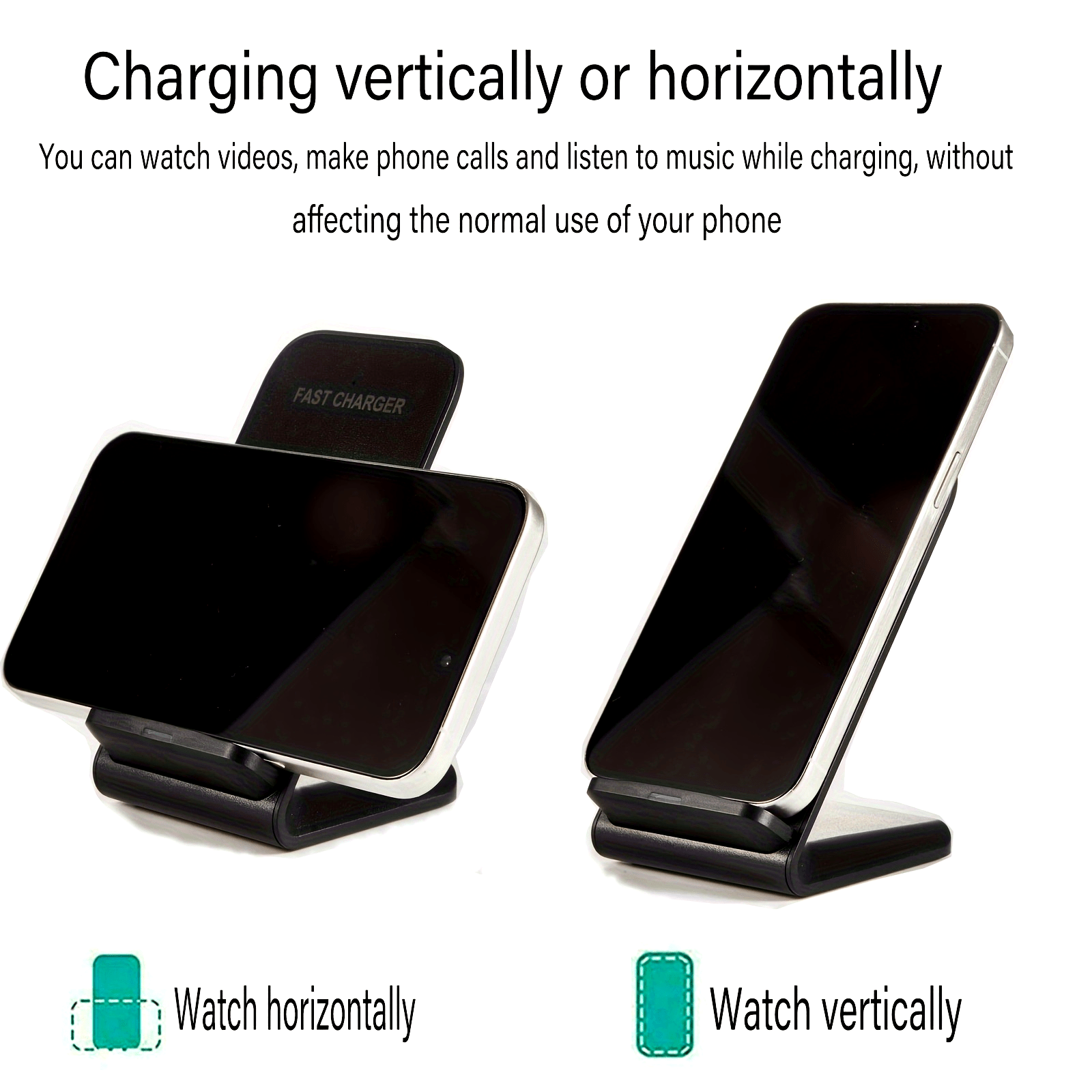 Feature: 100% brand new and high quality. The wireless charging station can charge -enabled mobile phones at a speed 1.6 times faster than standard wireless chargers. With 2 coils can not only increase charging speed, but also wide loading area. Intelligently adjust the charging speed, 5W / 7.5W / 10W / 15W / 20W / 30W is suitable for various smart phones. The phone can be charged vertically and horizontally to suit the angle of your eyes.