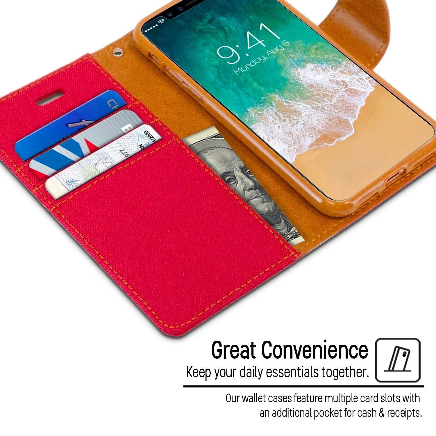 Wallet Convenience:Featuring multiple card slots and a cash pocket, this case transforms into a versatile wallet, allowing you to carry your phone, cards, and cash in one place.
