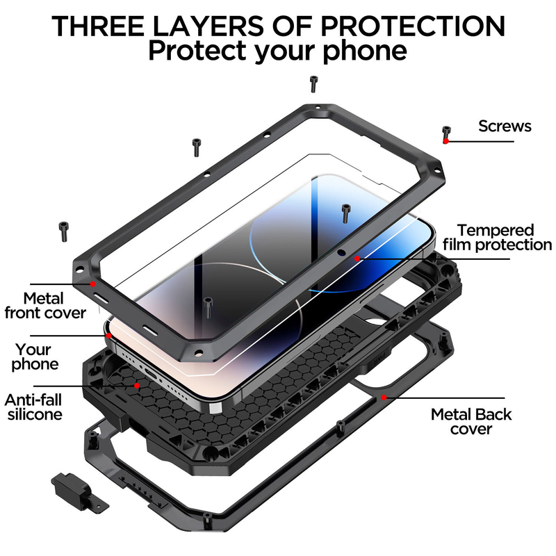 Transform your iPhone 14 Pro into a shockproof protected device with the premium metal case!