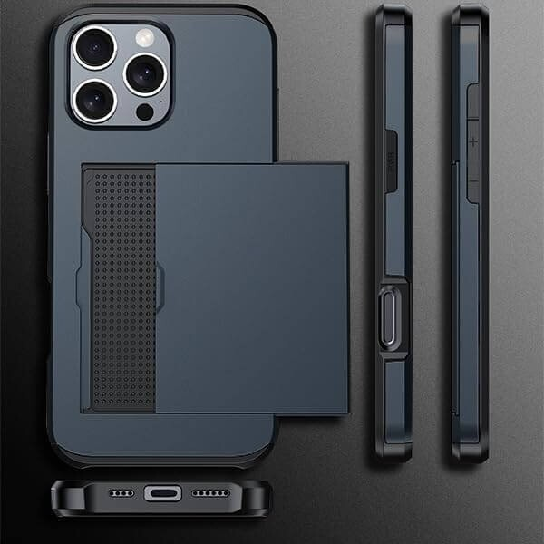 For iPhone 14 Pro Slide Card Holder Shockproof Case Cover Navy Blue