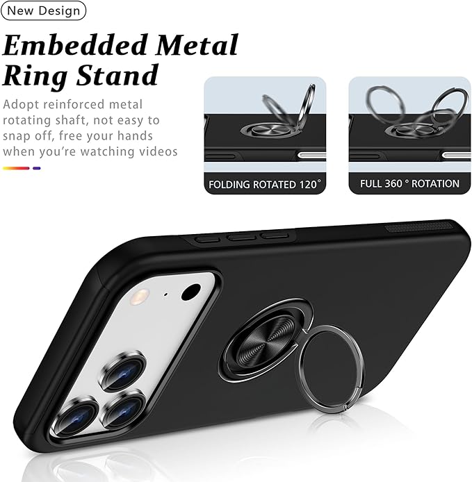 For iPhone 17 Pro Case with Metal Ring Stand-Black