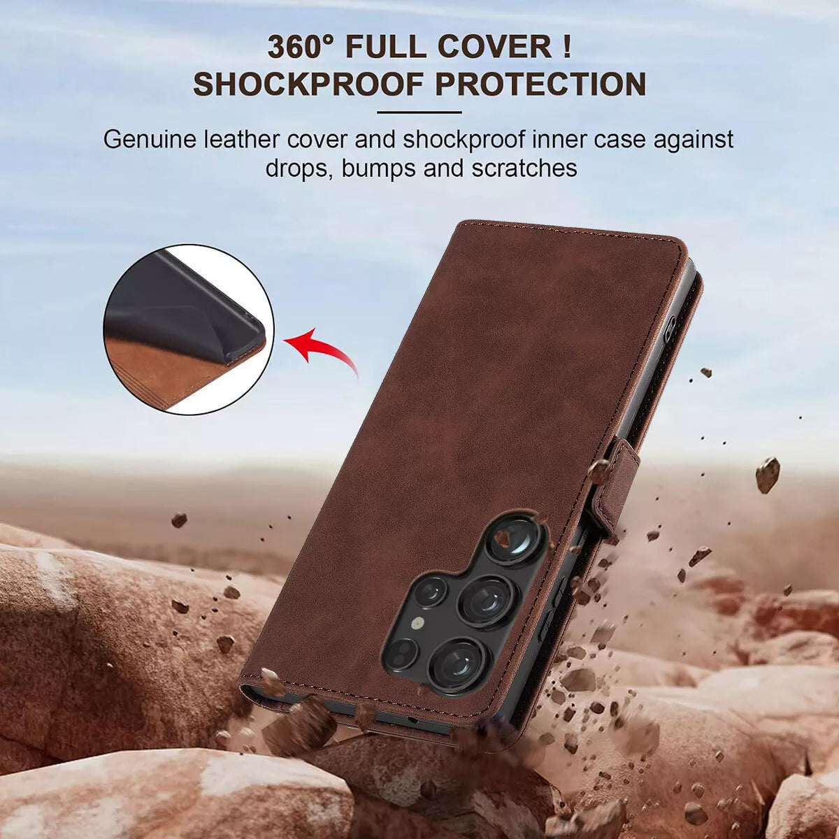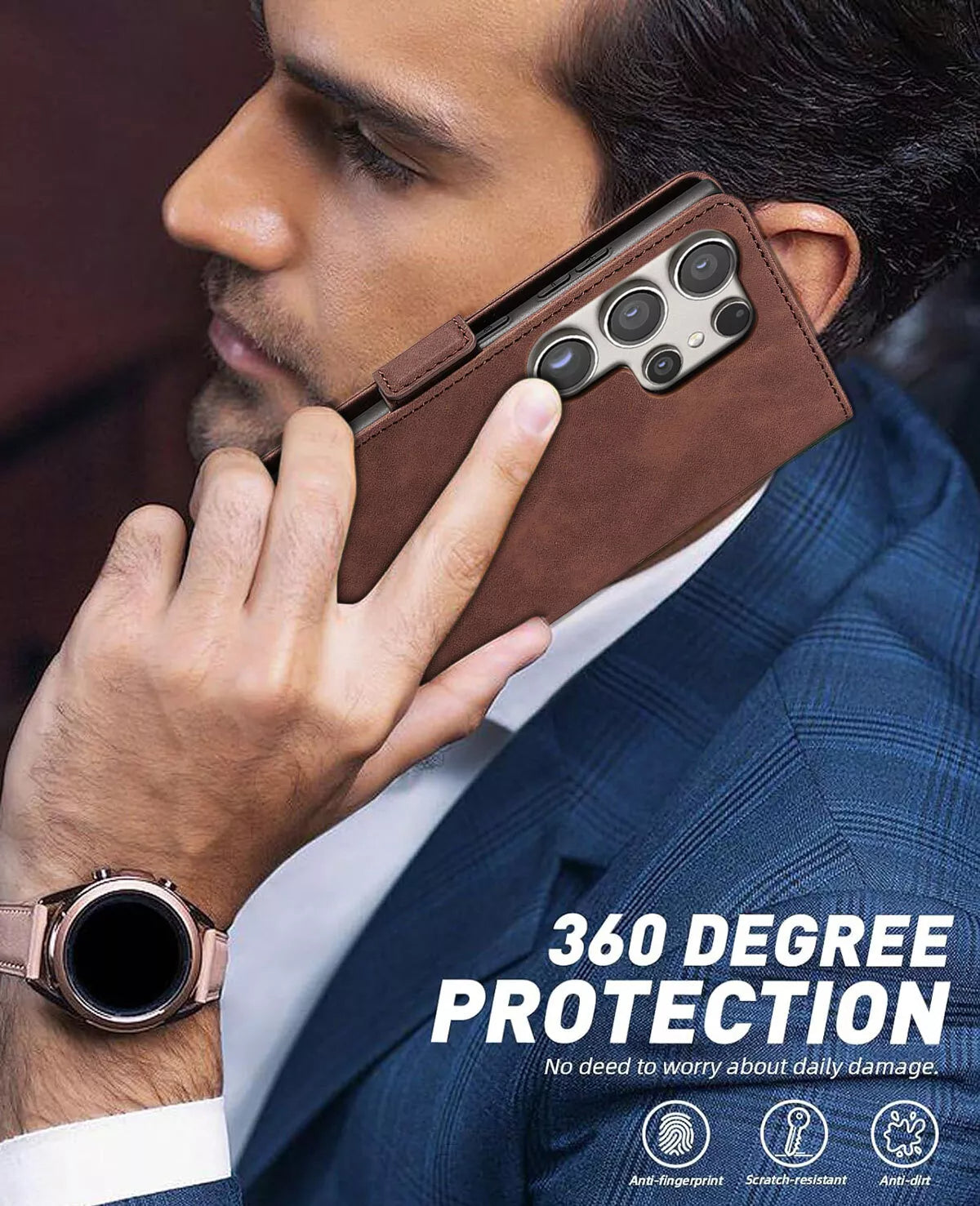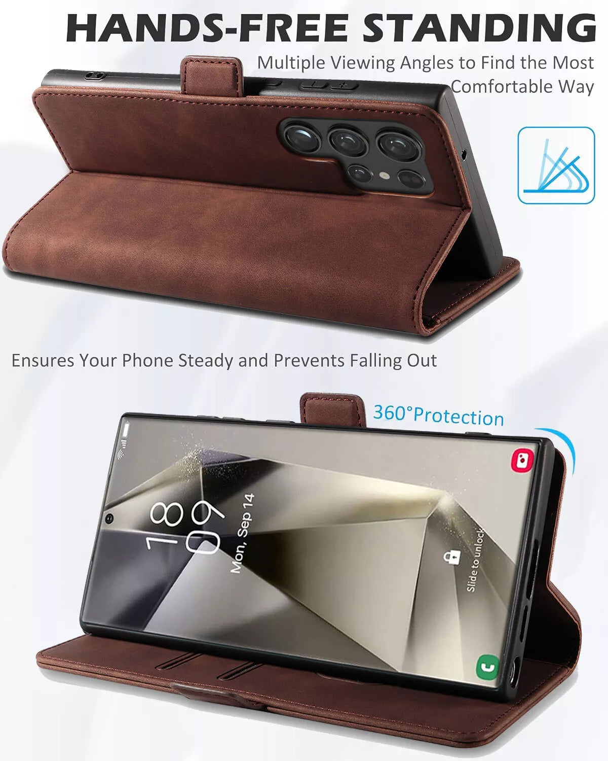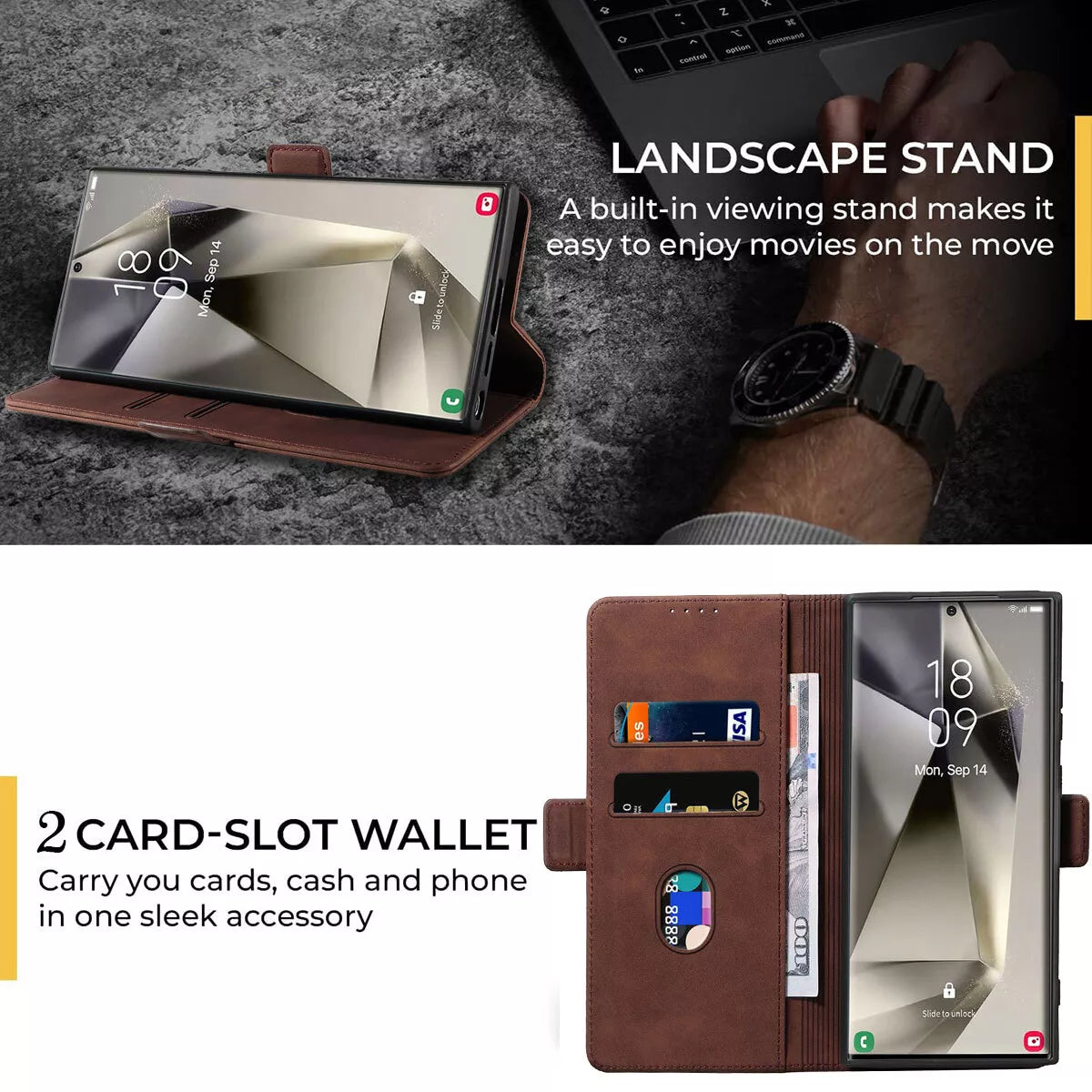 For Samsung Galaxy S24 Wallet Case Brown Colour Folio Flip Cover