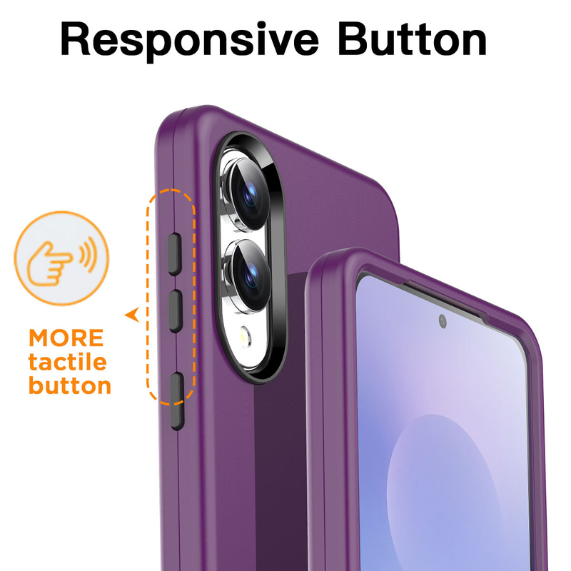 This heavy-duty case for Samsung Galaxy offers comprehensive protection through three layers. A flexible TPU inner layer securely grips the phone and cushions shocks, while a rigid PC outer shell enhances grip and adds impact resistance. Designed for durability, it keeps your device safe from drops and bumps with expert-level defense.