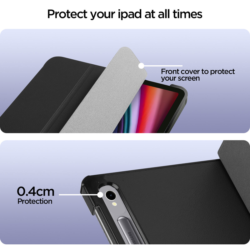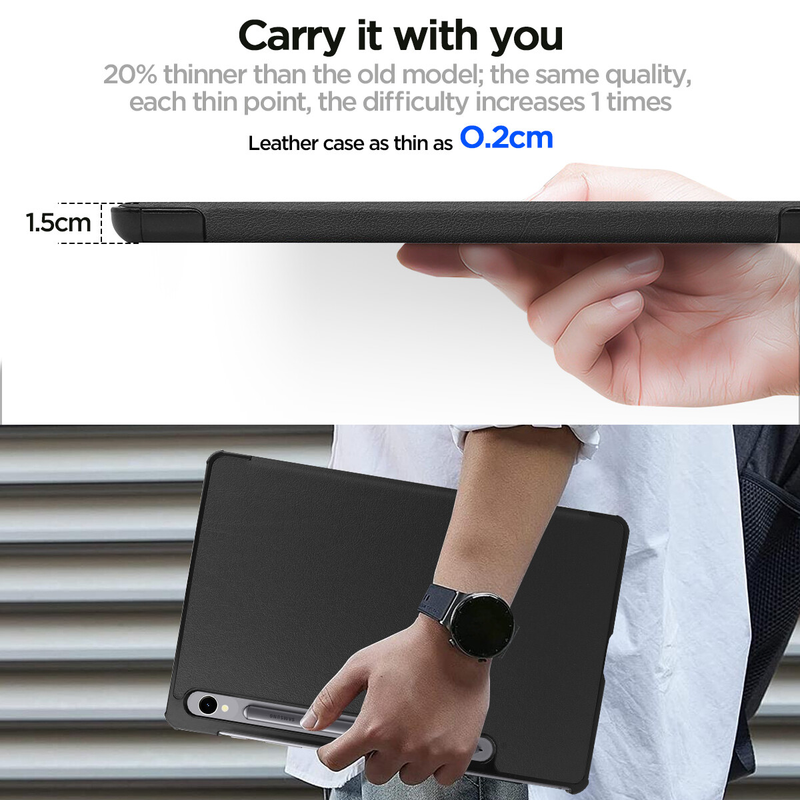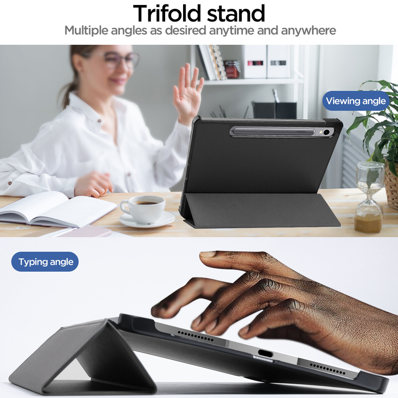 This premium folio case is precisely crafted for the Samsung Galaxy Tab S9 11-inch (models SM-X710, SM-X716B, SM-X718U), ensuring perfect compatibility. Made from durable PU leather with a soft microfiber interior, it offers reliable protection against scratches and bumps without adding bulk. The case features a dedicated magnetic slot for your S Pen, allowing easy pairing and charging (S Pen sold separately). Its built-in magnets enable automatic wake/sleep functionality, enhancing battery efficiency. The tri-fold design doubles as a stand, providing versatile viewing and typing angles for professional use.