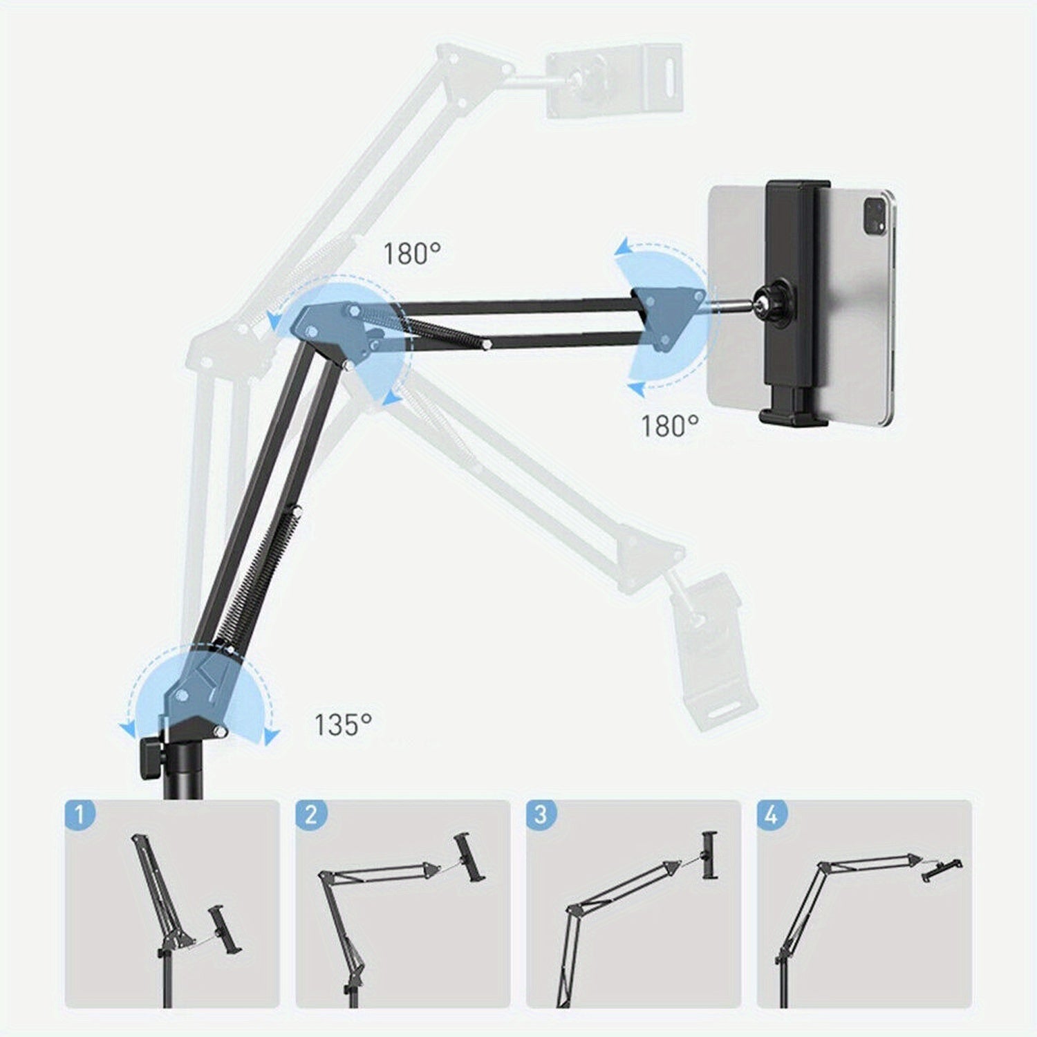 The flexible arm allows multi-directional bending, while the 360-degree rotating holder ensures optimal viewing angles.