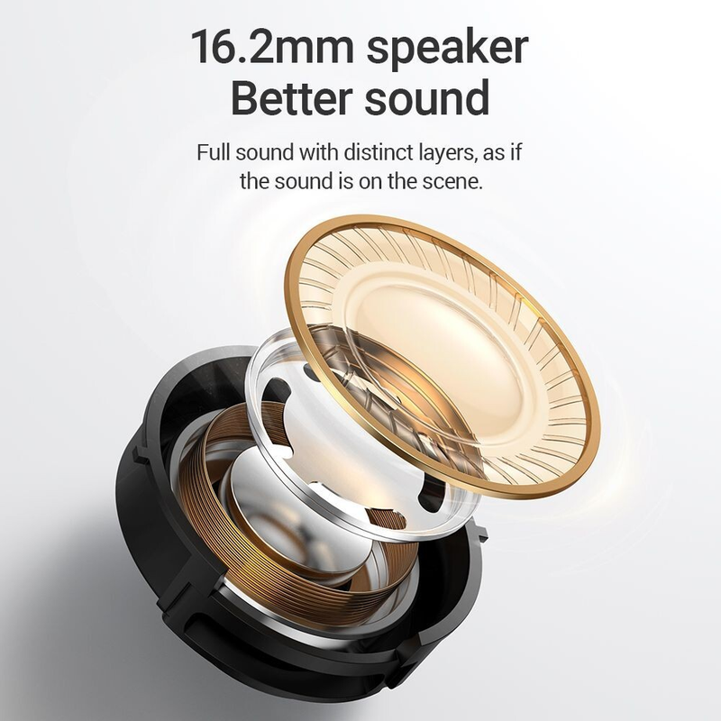16.2mm large dynamic drivers– Delivers powerful bass, clear mids, and crisp highs for a balanced and immersive audio experience.