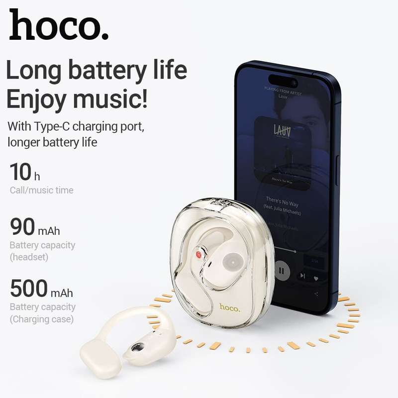 Hoco Wireless Bluetooth Ear Hook Earbuds-Milky White