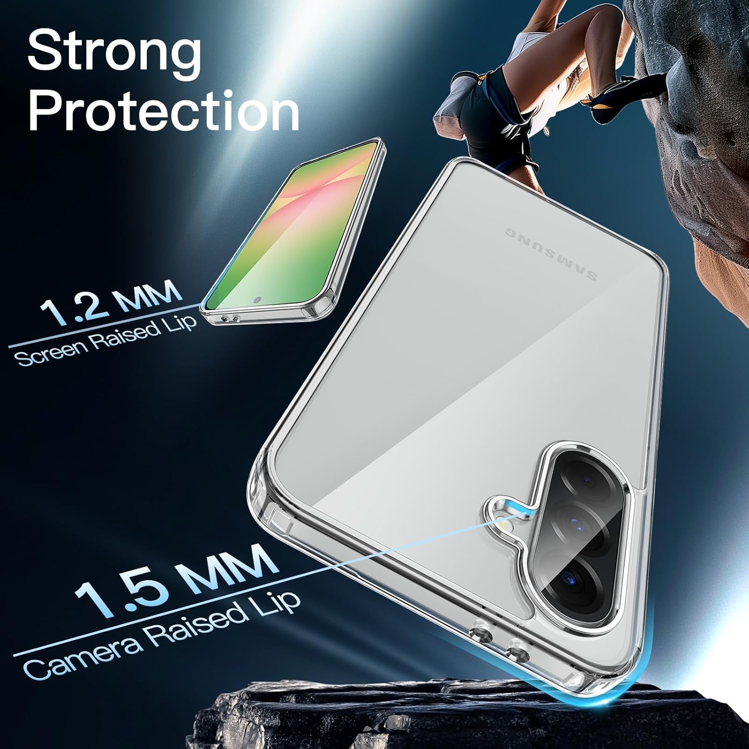 The Clear Case for Samsung Galaxy A56 offers military-grade protection with advanced shock-absorbing technology and upgraded corner airbags that disperse 99% of impact forces.