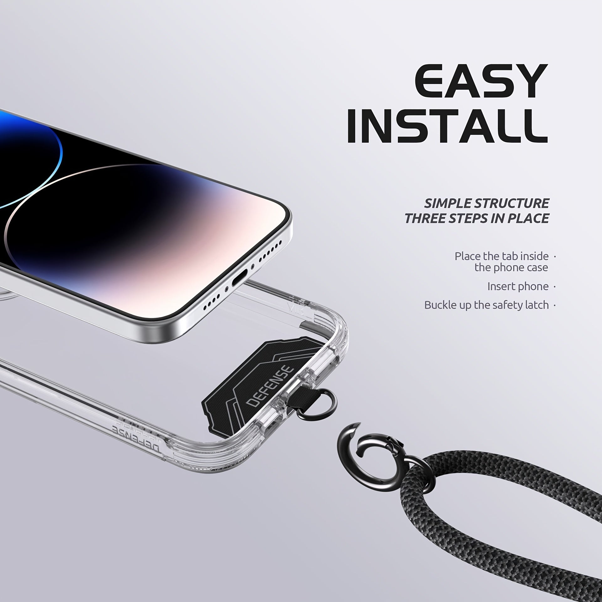 - No tools required. Simply pass the pad through the charging hole of a fully-covered phone case, insert your phone, and connect the lanyard.