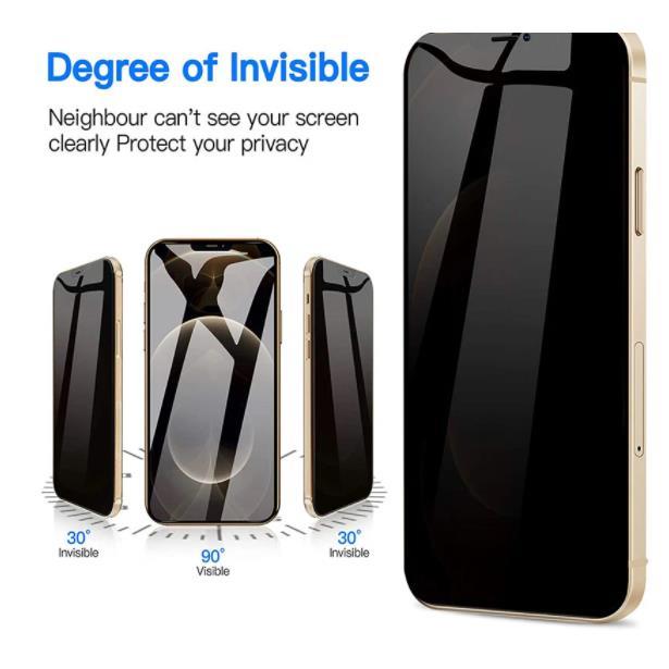 - Privacy protection, the anti spy screen protector glass is only visible to persons directly face the screen, with anti-spy coating it blocks views from the left and right side at a specific angle; Protects your privacy information in public occasions, on the bus or metro from peeping eyes.