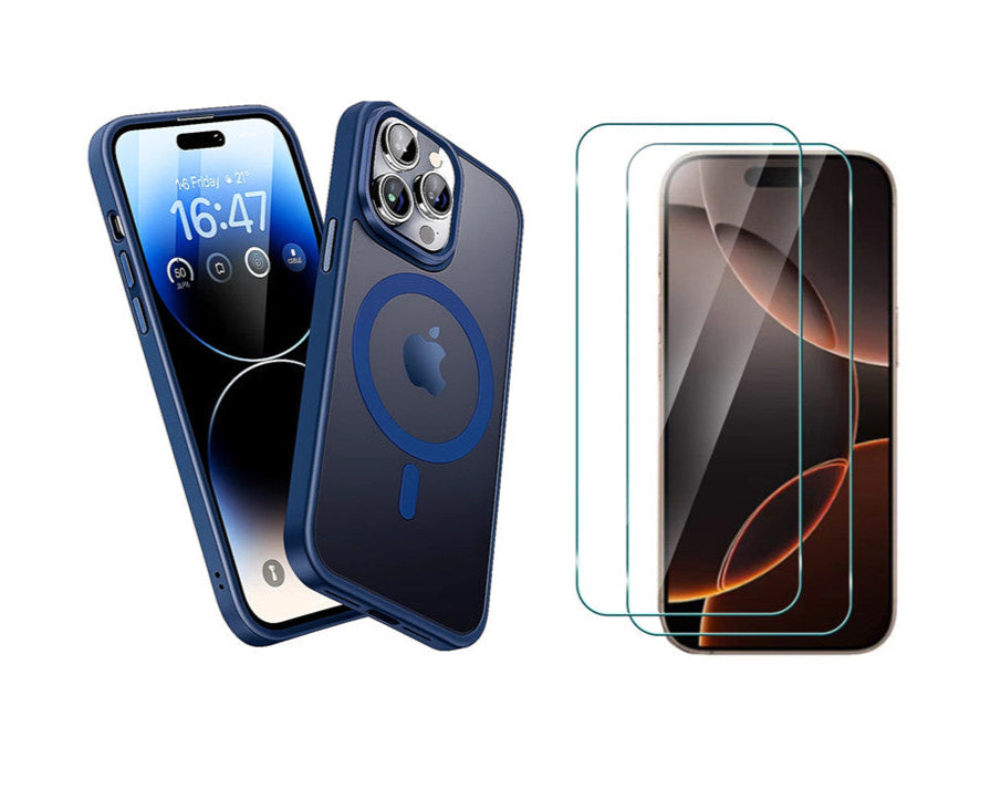 Slim Magsafe Shockproof Blue Case For iPhone 14 Pro + 2 x Glass Screen Protectors